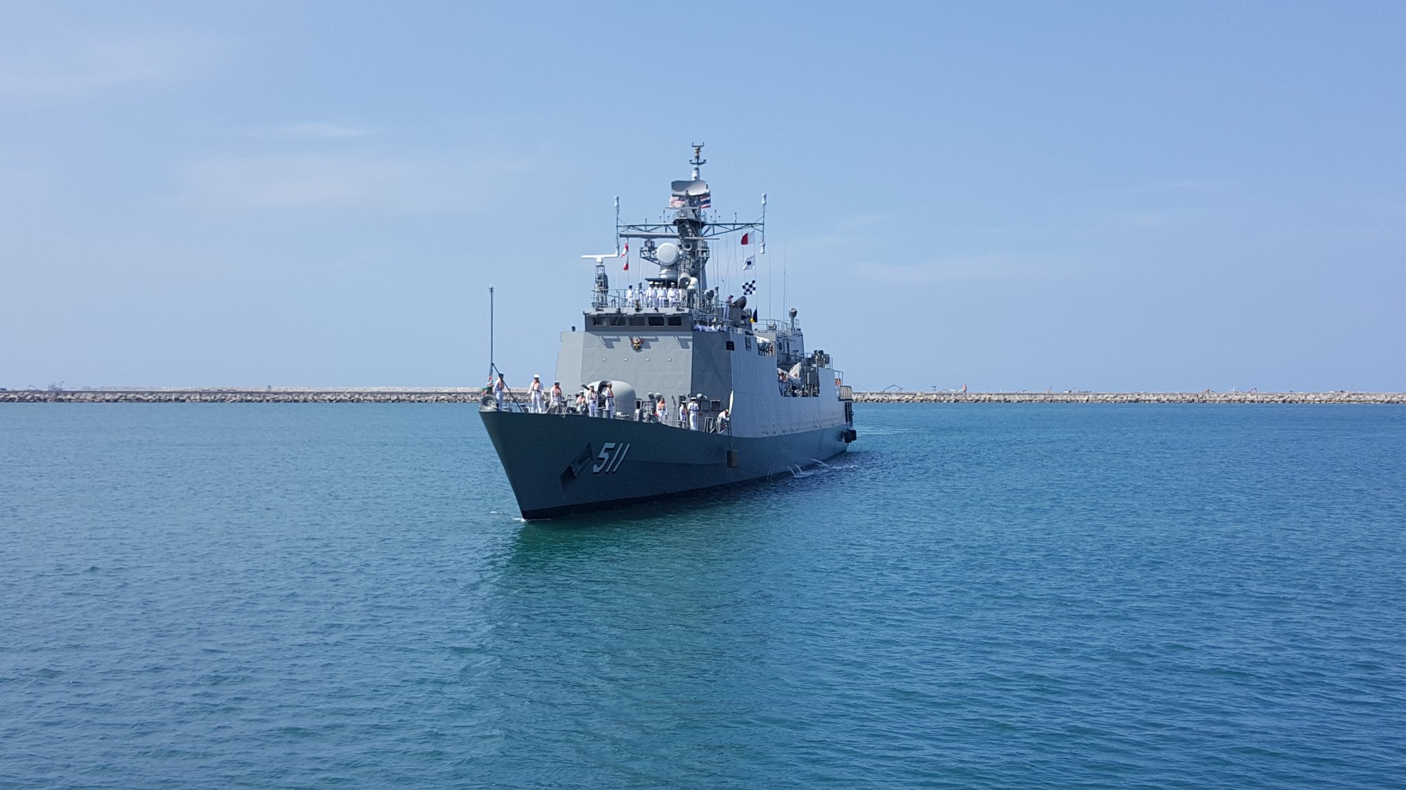 (ซึ่งเป็นเรือคอร์เวตติดอาวุธทันสมัยล้นลำ) เดินทางกลับฝั่งพร้อมลากเรือประมงต่างชาติตามหลังมา
